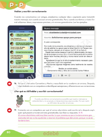 16. Revisa el chat entre Cervantino y María y reescríbelo en tu cuaderno sin errores. Después,