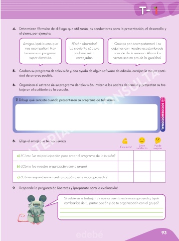 6. Organicen el estreno de su programa de televisión. Inviten a los padres de familia y proyecten su tra-