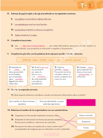 III. Subraya de azul el sujeto y de rojo el predicado en las siguientes oraciones.