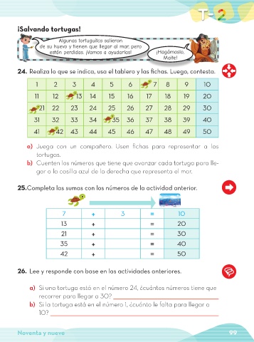 b) Cuenten los números que tiene que avanzar cada tortuga para lle-