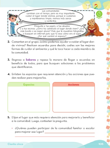 4. Enlisten los espacios que requieren atención y las acciones que pue-