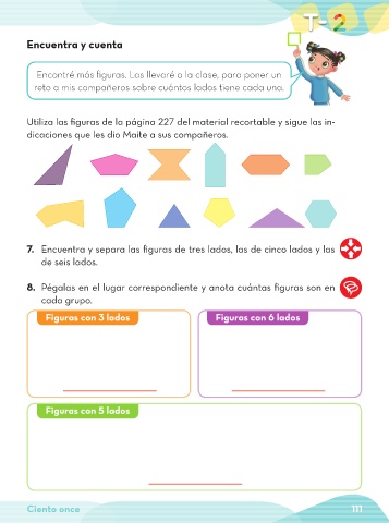 7. Encuentra y separa las figuras de tres lados, las de cinco lados y las