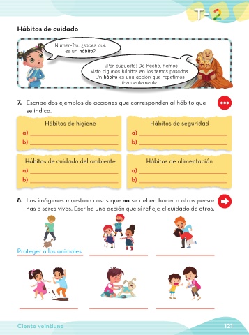 7. Escribe dos ejemplos de acciones que corresponden al hábito que