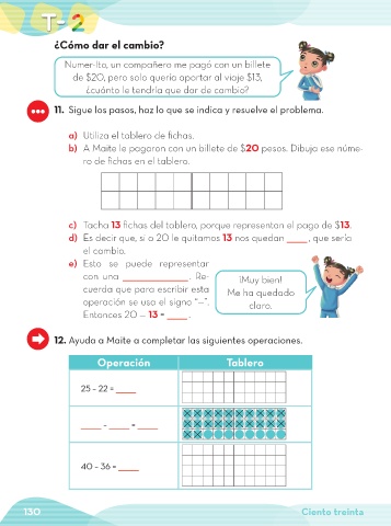b) A Maite le pagaron con un billete de $20 pesos. Dibuja ese núme-