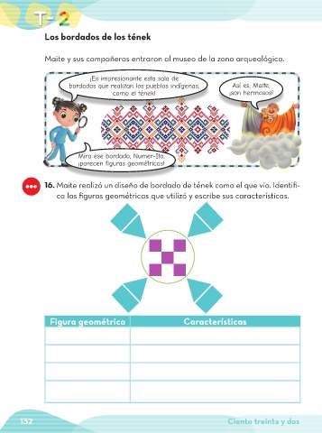 16. Maite realizó un diseño de bordado de tének como el que vio. Identifi-