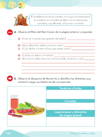 4. Observa el Plato del Bien Comer de la página anterior y responde.