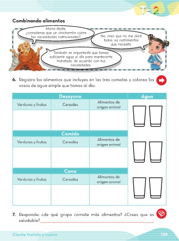 6. Registra los alimentos que incluyes en las tres comidas y colorea los