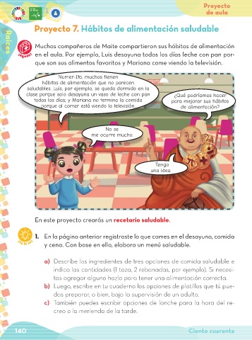 en el aula. Por ejemplo, Luis desayuna todos los días leche con pan por-