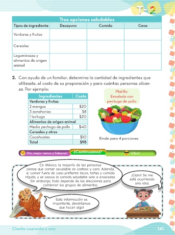 2. Con ayuda de un familiar, determina la cantidad de ingredientes que