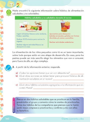 Piensa en dos hábitos saludables que se practican en tu familia,