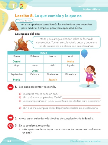 d) ¿En qué mes cumples años? Registra tu nombre en el calendario.