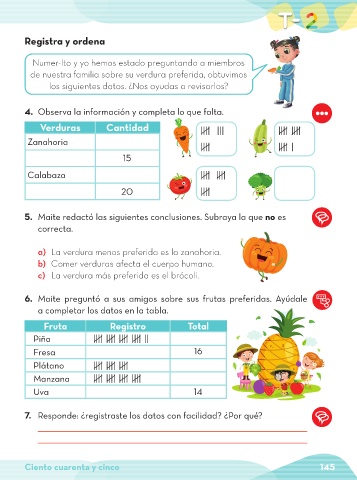 6. Maite preguntó a sus amigos sobre sus frutas preferidas. Ayúdale