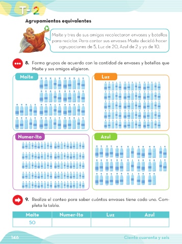 9. Realiza el conteo para saber cuántos envases tiene cada uno. Com-