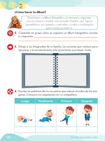 2. Comenten en grupo cómo se organiza un álbum fotográfico. Escribe