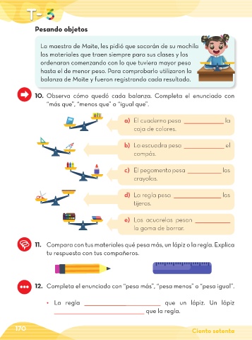 11. Compara con tus materiales qué pesa más, un lápiz o la regla. Explica