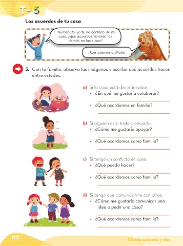 3. Con tu familia, observa las imágenes y escribe qué acuerdos hacen
