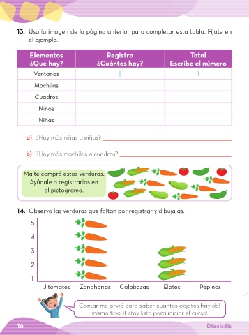 14. Observa las verduras que faltan por registrar y dibújalas.