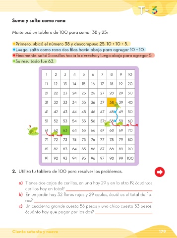 2. Utiliza tu tablero de 100 para resolver los problemas.