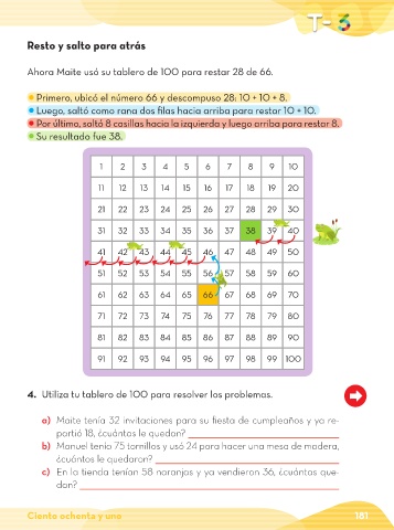 4. Utiliza tu tablero de 100 para resolver los problemas.