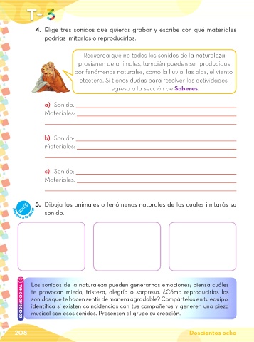 4. Elige tres sonidos que quieras grabar y escribe con qué materiales