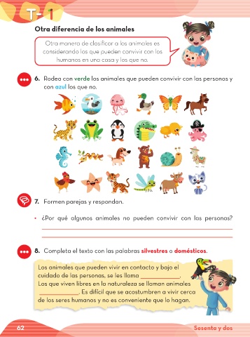 6. Rodea con verde los animales que pueden convivir con las personas y