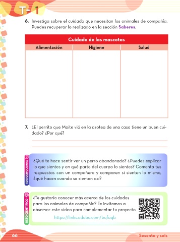 6. Investiga sobre el cuidado que necesitan los animales de compañía.