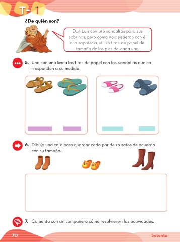 5. Une con una línea las tiras de papel con las sandalias que co-