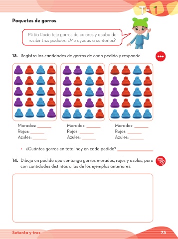 13. Registra las cantidades de gorros de cada pedido y responde.