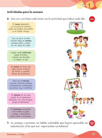 6. Une con una línea cada texto con la actividad que indica cada día.