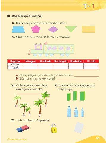 10. Ordena las palmeras de la 11. Une con una línea cada botella