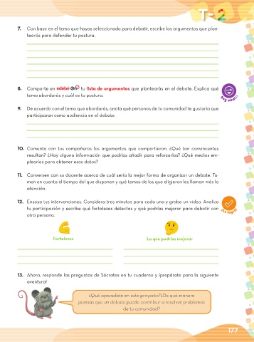 7. Con base en el tema que hayas seleccionado para debatir, escribe los argumentos que plan-