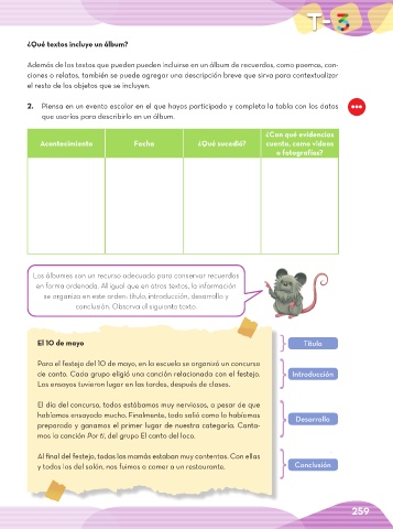 2. Piensa en un evento escolar en el que hayas participado y completa la tabla con los datos