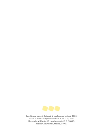 Este libro se terminó de imprimir en el mes de junio de 2023, en los talleres de Impresos Vacha S. A. de C. V, Juan Hernández y Dávalos 47, colonia Algarín, C. P. 06880, alcadía Cuauhtémoc, México, CDMX.