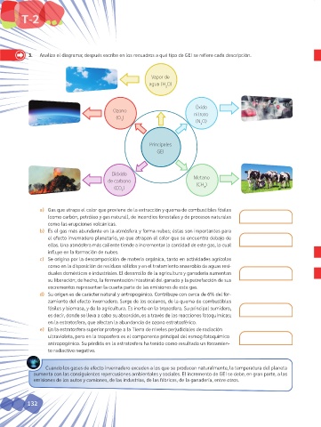3. Analiza el diagrama; después escribe en los recuadros a qué tipo de GEI se refiere cada descripción. 4. Analiza la información de la siguiente tabla y traza una gráfica circular que la represente. Si tienes dudas sobre cómo