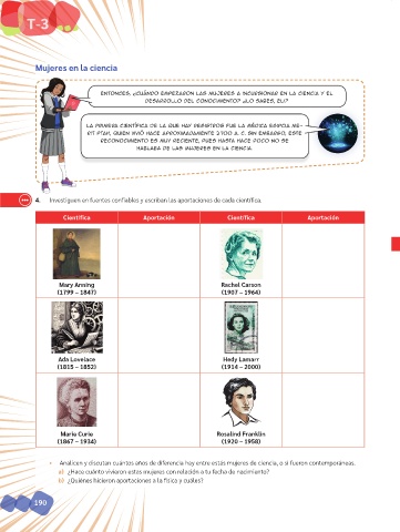 4. Investiguen en fuentes confiables y escriban las aportaciones de cada científica.