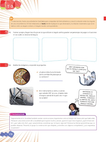 5. Formen parejas y hagan tres dibujos en los que utilicen el ángulo central; pueden ser personajes de juegos o situaciones
