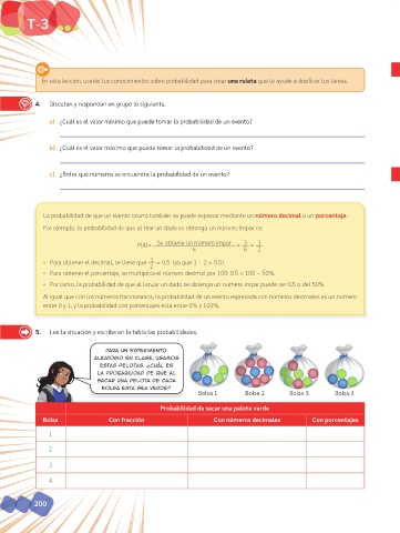 5. Lee la situación y escribe en la tabla las probabilidades.