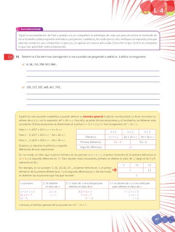 valores de a, b y c en la expresión an + bn + c. Para ello, se parte de tres ecuaciones y, al resolverlas, se obtienen esas