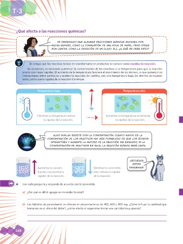 interacciones entre partículas y acelera la reacción. En cambio, con una temperatura baja, los átomos se mueven