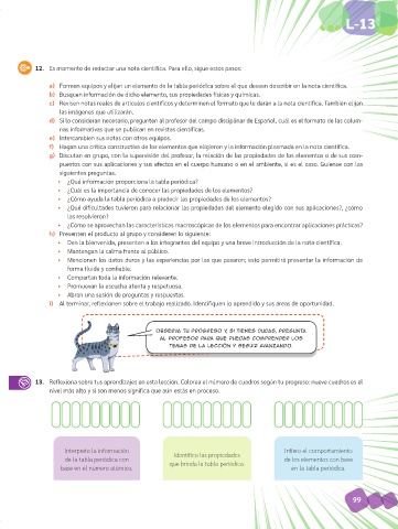 g) Discutan en grupo, con la supervisión del profesor, la relación de las propiedades de los elementos o de sus com-