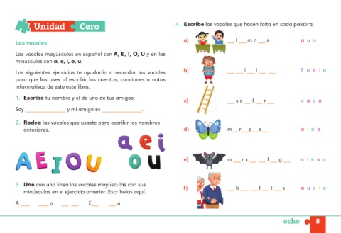 Unidad Cero 4. Escribe las vocales que hacen falta en cada palabra.