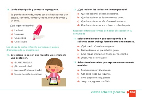 11. Lee la descripción y contesta la pregunta. 13. ¿Qué indican los verbos en tiempo pasado?