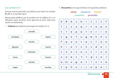 Los sonidos tl, tr 2. Encuentra en la sopa de letras las siguientes palabras: