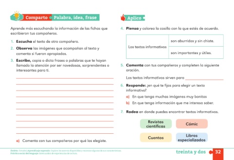 Ámbito: Estudio | Aprendizaje esperado: Explora los acervos disponibles y reconoce algunas de sus características. treinta y dos 32