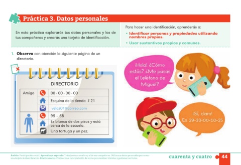 Ámbito: Participación social | Aprendizaje esperado: Trabaja con su nombre y el de sus compañeros. Utiliza sus datos personales para crear cuarenta y cuatro 44