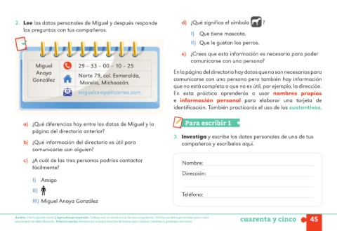 2. Lee los datos personales de Miguel y después responde d) ¿Qué significa el símbolo ?