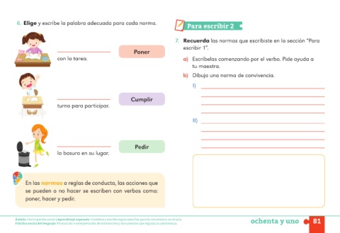 Ámbito: Participación social | Aprendizaje esperado: Establece y escribe reglas sencillas para la convivencia en el aula. ochenta y uno 81