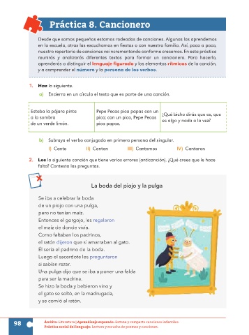98 Ámbito: Literatura | Aprendizaje esperado: Entona y comparte canciones infantiles.