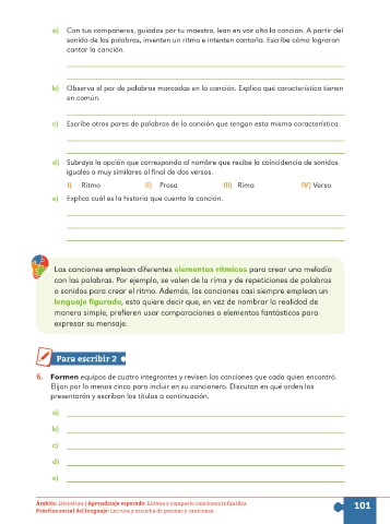 Ámbito: Literatura | Aprendizaje esperado: Entona y comparte canciones infantiles. 101