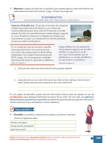 Ámbito: Participación social | Aprendizaje esperado: Explora el periódico y elige una noticia relevante. 109